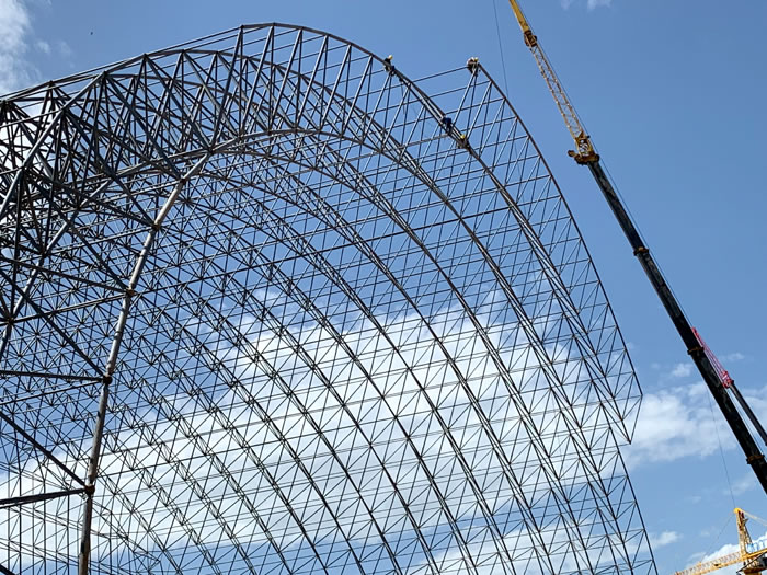 (2)网架加工前应对现场尺寸进行复测,确认无误后方可进行加工、安装;网架制作、运输、安装应遵守《空间网格结构技术规程》JGJ7-2010、《钢网架喀什螺栓球节点》JG/T 10-2009、《钢网架喀什螺栓球节点用高强度螺栓》 GB/T 16939-2016、《喀什钢结构喀什工程喀什施工规范》 GB50755-2012、《喀什钢结构喀什工程施工质量验收标准》 GB50205-2020。