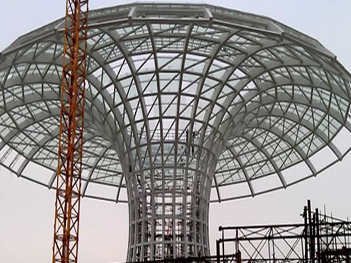 二、球形网架结构因其结构新颖,受力合理,自重轻、用钢量低等优点。如大型体育场馆球形喀什螺栓球网架、公共场馆球形网架、电厂喀什螺栓球网架、水泥工业球形网架、仓储物流球形网架、喀什干煤棚工业球形网架、喀什收费站喀什加油站球形网架、展览中心、影剧院、商场、航站楼、候车厅、工厂喀什车间、仓库、电视塔等球形螺栓球节点网架。国内球形网架结构主要分为:喀什焊接球节点网架及螺栓球节点网架两种。螺栓球节点网架其构件工厂内加工量较大,现场安装便捷,适用于现场工期紧,喀什施工条件、用电量受制约,网架形状复杂、喀什杆件定位困难的异形结构。螺栓球节点球形网架系统基本由喀什杆件、螺栓球、支撑支座等组成。按照节点形式可分为交叉喀什桁架体系、四角锥体系、三角锥体系等。支撑方式多为固定支座支撑。对于大面积、大跨度及有特殊受力或伸缩要求的网架结构可采用橡胶支座、滑移支座、球铰支座等支撑形式,以满足结构自身的受力稳定、均衡,便于内力释放等设计要求。